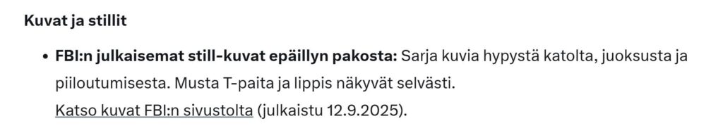 Sitten siihen ainoaan kuvaan, mitä FBI tarjoaa. Katsokaa linkistä alta.