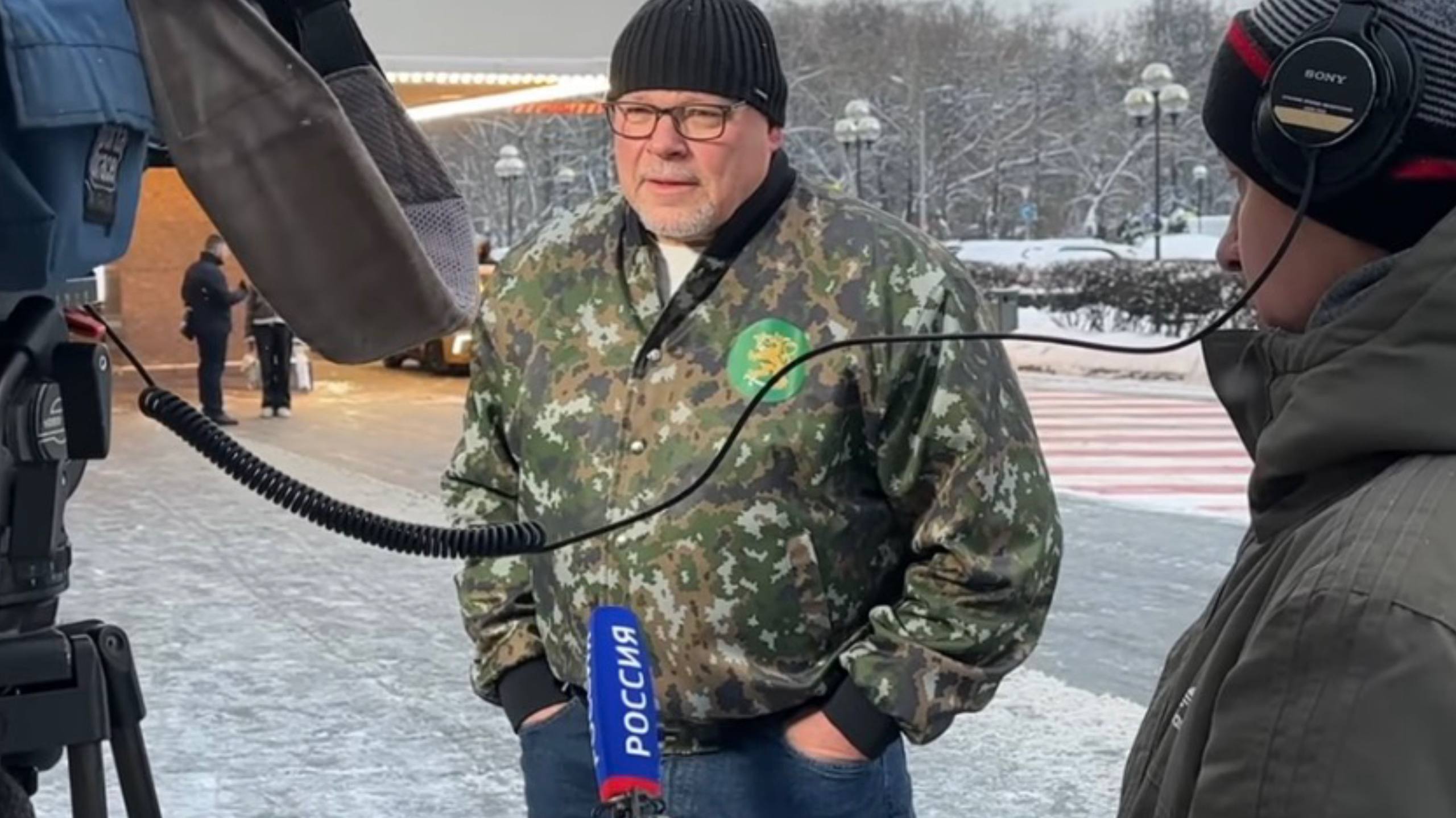 Turtiaisen videolla näkyy selvästi kuvausryhmän mikrofoni, jossa lukee suurilla kirjaimilla ”РОССИЯ” (Rossiya). Kyseessä on Rossiya 1 -kanava.