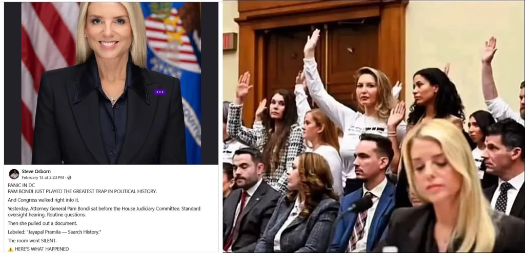 Epstein-tiedostojen osalta levitetään tekstiä, jonka mukaan Washingtonin hallintopiirit ovat paniikissa, kun oikeusministeri Pam Bondi viritti kongressin jäsenille ansan: näiden tekemät, oikeusministeriön tallentamat haut julkaistuista asiakirjoista paljastavat hallinnon pahikset – ikään kuin olennaista ei olisi se tieto, joka julkaisuissa jo on ja jonka julkaisemista oikeusministeriö on viivytellyt. Bondi käytti kysyjien tekemiä hakuja valmistautuakseen kysymyksiin, kiersi kysymyksiä, puhui kysyjien päälle eikä suostunut katsomaan takanaan seisovia hyväksikäytön uhreja. Ja hänestä koetetaan nyt leipoa jonkinlaista sankaria!